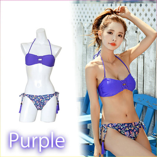 バンドゥ ビキニ バンドゥビキニ セクシー 可愛い 水着 レディース かわいい 小胸 体型カバー 紐パンツ 紐ブラ サイドストリング 紐 マクラメ編み ペイズリー柄 S M L 小さいサイズ 大きいサイズ 7号 9号 11号 ピンク オレンジ 紫 青 ホルターネック [R](Q)