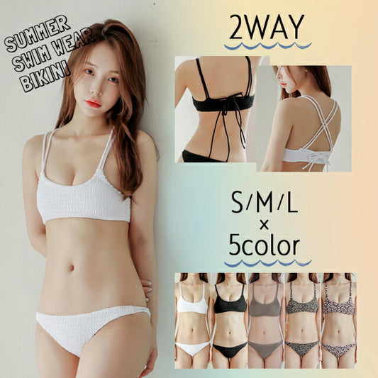 ビキニ セクシー バッククロス バンドゥビキニ ハーフブラジリアン 水着 レディース ブラジリアンビキニ シンプル 柄なし 華奢 ブラジリアン かわいい 可愛い エロい ストラッピー 豹柄 レオパード パッド入れ替え可能 無地 きゃしゃ クロス リボン 紐 白 黒 リゾート [R](Q)